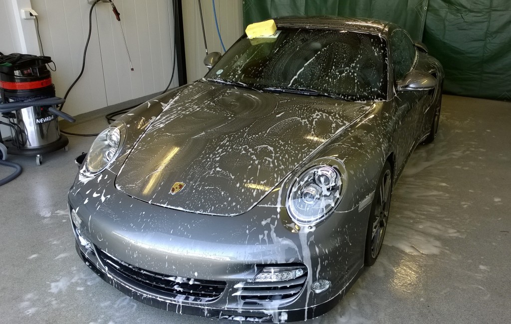 TI-klubin valoisassa tilassa Espoon Koskelossa tämänkin Porschen omistaja on saanut pestä ja vahata autoaan kiireettömästi ja juuri hänelle sopivana aikana.
