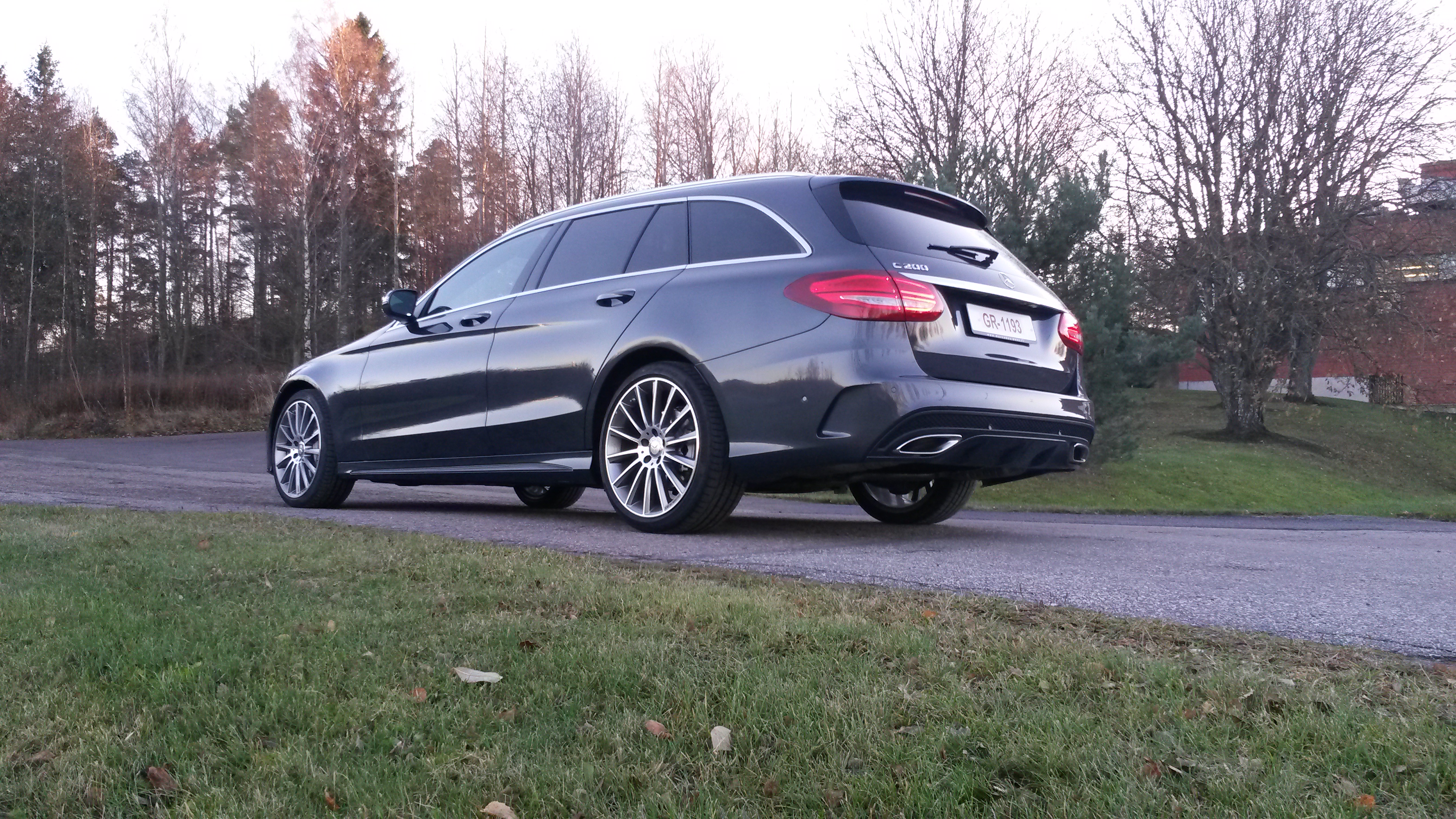 Koeajossa Mercedes-Benz C200 T. Kesällä koeajoimme C-sarjan sedanin ja sen viimeistely teki meihin lähtemättömän vaikutuksen. MB C-sarjan farmari saapui tänä syksynä maahamme ja saimme koeajoon AMG-varusteisen version, jonka keulalla hyrräsi 2-litrainen bensaturbo. Päälle päin tämä auton näyttää todella hyvältä. AMG-höysteet isoine vanteineen sopivat kuin nenä päähän. Sama onnistunut linja jatkuu sedanin tavoin myös kabiinin puolella.
