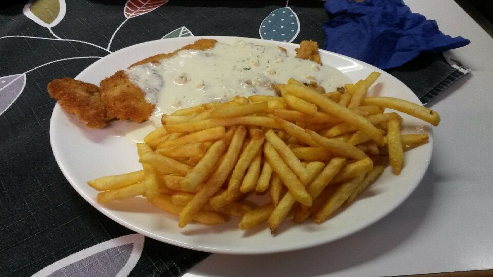 Ja maun puolesta se kyllä kannatti. Ihan halvimmasta päästä Ruokavintti ei toki ole, Hurmalaisen broilerileike lohkoperunoiden kera ja höystettynä bearnaisekastikkeella, parsalla ja porkkanoilla maksoi tasan kympin, päätoimittajan aurajuustoleike 40 senttiä enemmän.