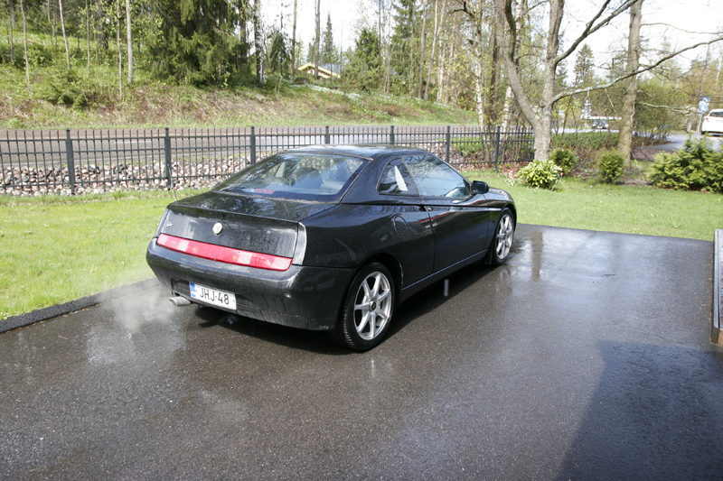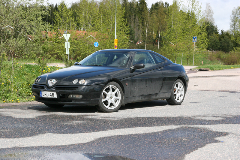 Mutta kaikkiaan tämä coupemallin Alfa oli minusta oikein hauska tuttavuus. Ulospäin se voi olla jonkun mielestä naismainen, mutta ajaessa se vaatii kyllä miehen kättä. Ajoasento tai näkyvyys eivät tosiaankaan ole GTV:n vahvuuksia. Äänetönkään auto ei varsinaisesti ole, vaikka sileällä tiellä meneekin kohtuullisen siististi.
