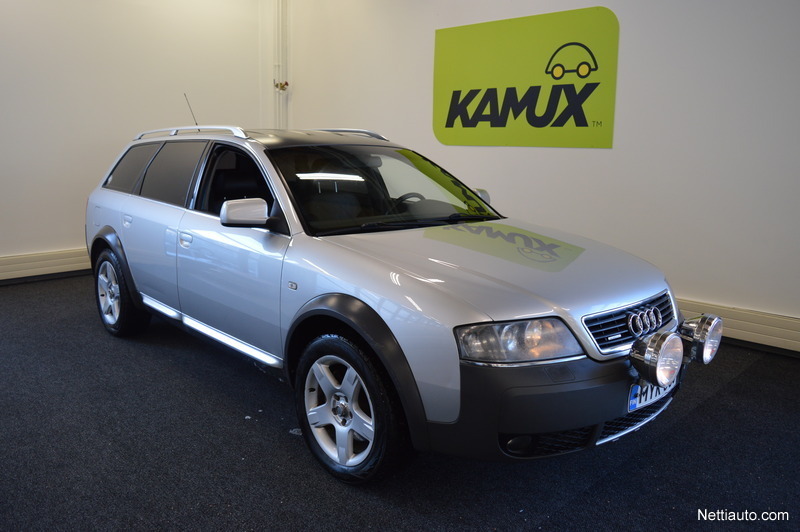 - Audi A6:stkin löytyy Allroad-malli. Niitä oli Nettiautossa tarjolla toukokuun lopulla kutakuinkin saman verran kuin A4 Allroadejakin, 57 kappaletta. Tarjonnassa oli paljon vanhempaa ja edullista kalustoa. Kuvan muhkea A6 Allroad 2,5 TDI Quattro vuosimallia 2001 oli 221 000 kilometriä ajettu Suomi-auto ja se oli myynnissä Helsingissä Konalan Kamuxissa 6999 eurolla.