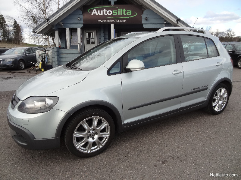 - Volkswagen Cross Golfeja on tarjolla niukasti, Nettiautossa niitä oli toukokuun lopulla myynnissä vain kolme. Tästä 93 000 kilometriä ajetusta Cross Golf 1.4 TSI Comfortlinesta vuosimallia 2007 Autosilta Espoossa pyysi 11 499 €.