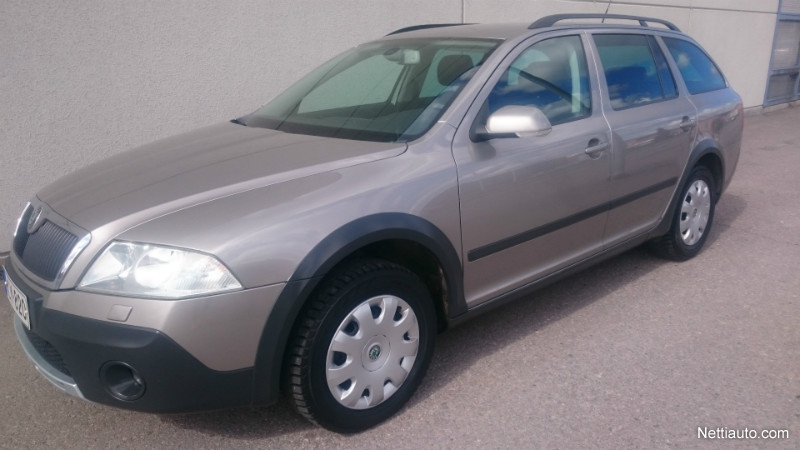 - Skoda Octavian korotettu nelivetofarmari levikkeineen on saanut mallinimen Scout. Kuvan Skoda Octavia Combi 2,0 TDI DPF 4X4 Scout on vuosimallia 2008 ja sen matkamittarilukema on jo 278 000 kilometriä. Escar Tampereella pyysi 10 800 euroa.