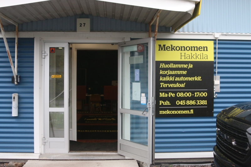 –Käynnistäminen uudelleen toiminta Mekonomen-korjaamona oli yllättävänkin helppoa. Tämä onnistui varmaan sijainninkin takia: täällä Hakkilassa ei ennestään ollut Mekonomen-korjaamoa ja marras-maaliskuun aikana aika monta muuta korjaamoa aika on tappanut pois markkinoilta. Pelkästään tältä samalta kadulta on kaksi yritystä mennyt konkurssiin, toinen taisi toimia tällä samalla kadulla muutaman kymmenen vuotta, Välja sanoo.
