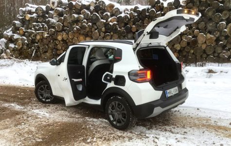 rekkojen kanssa samaa tahtia sähkön säästämisen nimissä, vaikka ajettavuus sinänsä on ihan miellyttävää ja kohtuullisen hiljaistakin. Lämpöä riittää hyvin ja ratin lämmityskin löytyy, mutta kaikki virtaa vievät herkut vähentävät tietysti rangea entisestään. Pieni akku on sopivan kevyt, joten omamassa on saatu pidettyä kurissa ja kantavuutta löytyykin kokonaiset 419 kiloa.