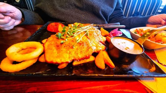 Katselin Ismetin hintoja ja ottaen huomioon ravintolan erittäin viihtyisään yleisfiiliksen ja siisteyden, hintataso tuntui varsinkin lounasaikana kohtuulliselta. Otin listalta pippurileikkeen kermaisella pippurikastikkeella hintaan 14.20 euroa. Enpä muista yhtä maukasta makuelämystä. Maku oli tasapainoinen: pippurin kyllä maistoi, mutta se ei polttanut suuta. Uskoakseni kastikkeessa oli käytettyä vastarouhittua musta- tai viherpippuria.